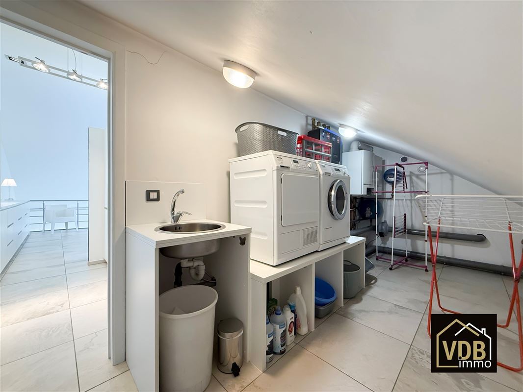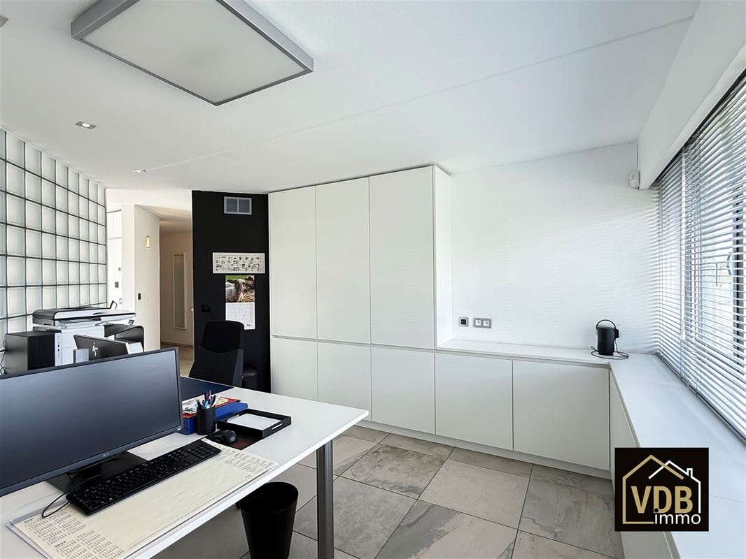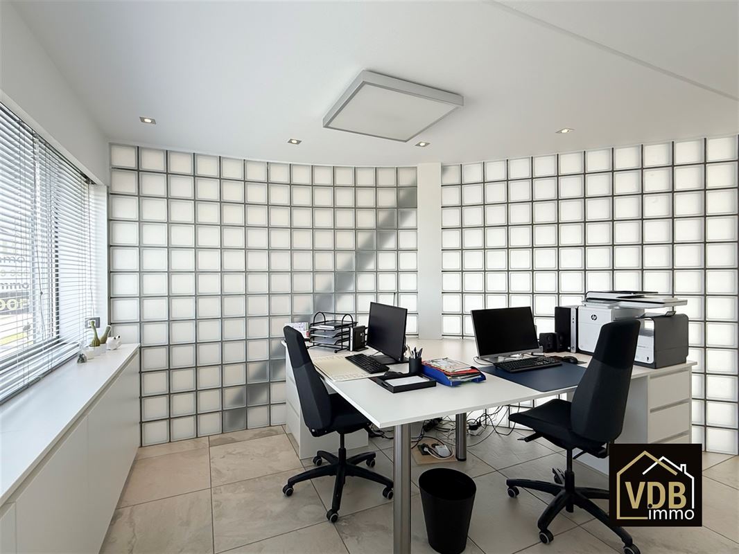 - Eerste verdieping boven het winkelpand: +- 180 m² bruto met 2 leefruimtes – open keuken met keukeneiland – 2 toiletten – bureau – bergingen – trappenhal en slaapkamer met dressing en badkamer;