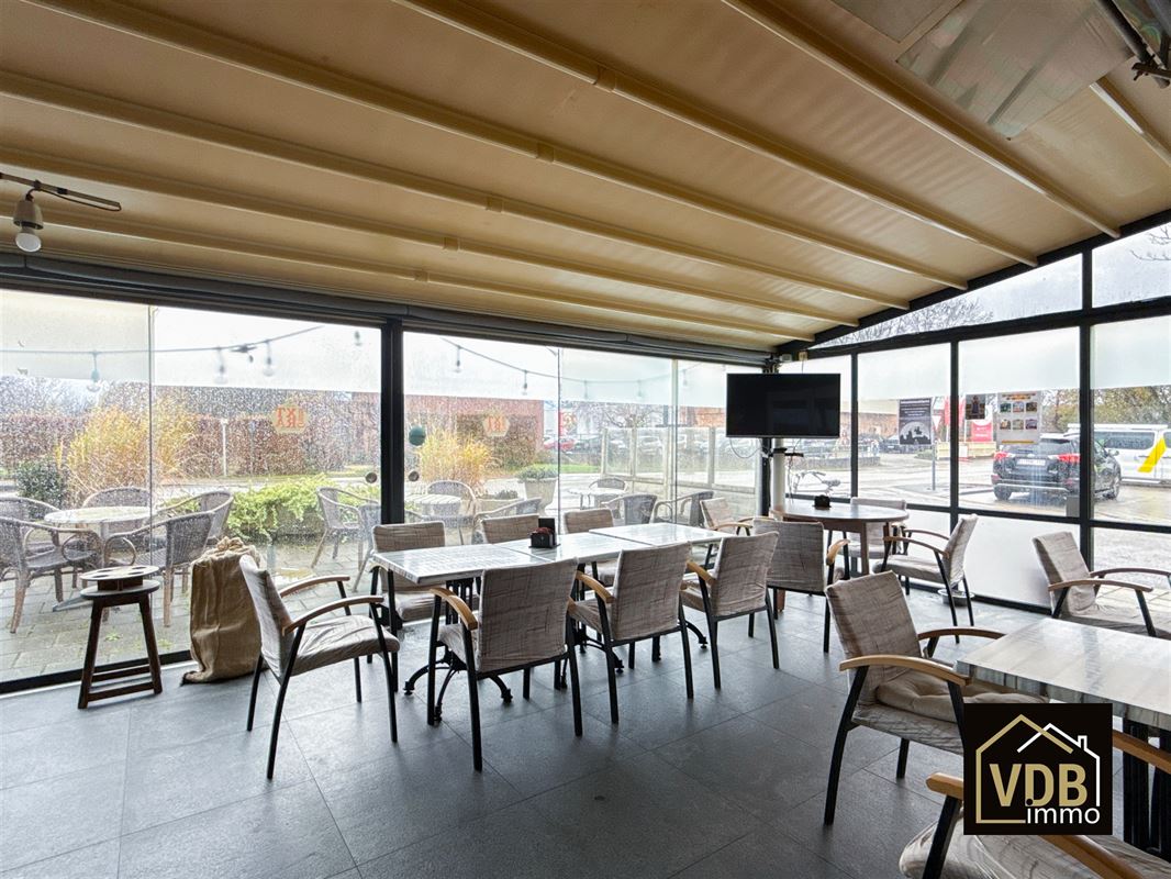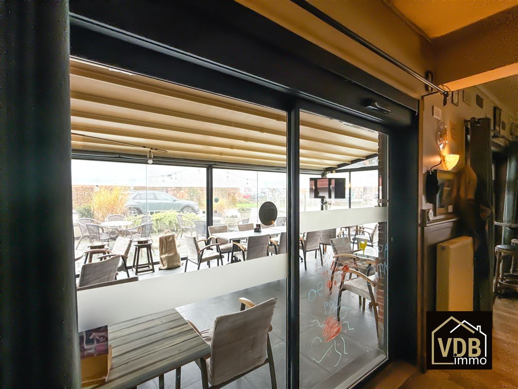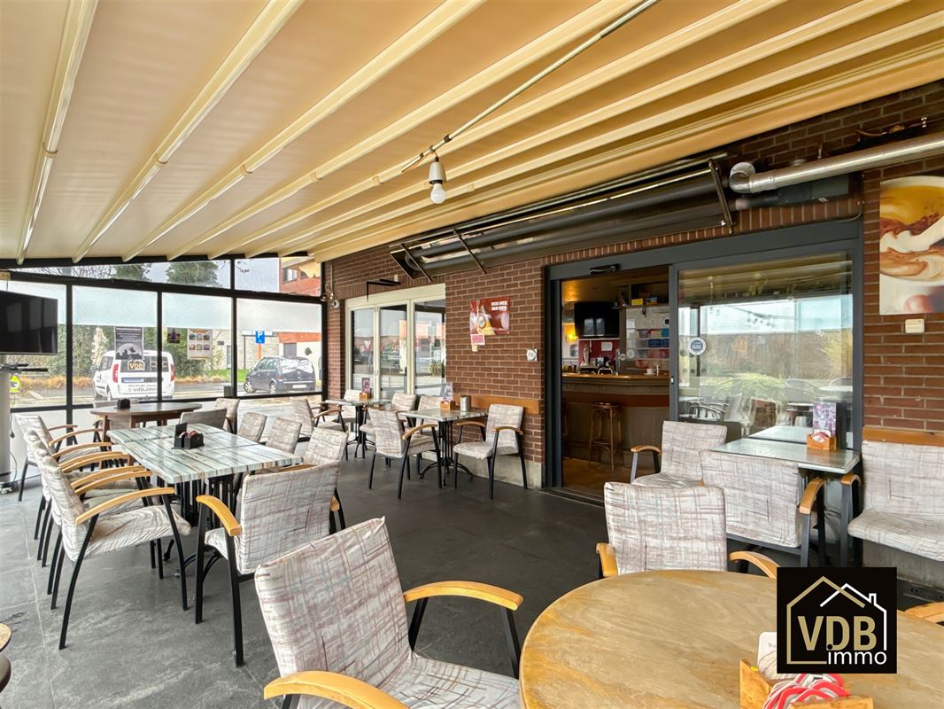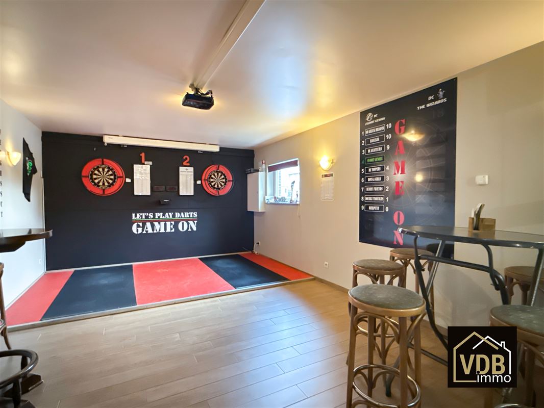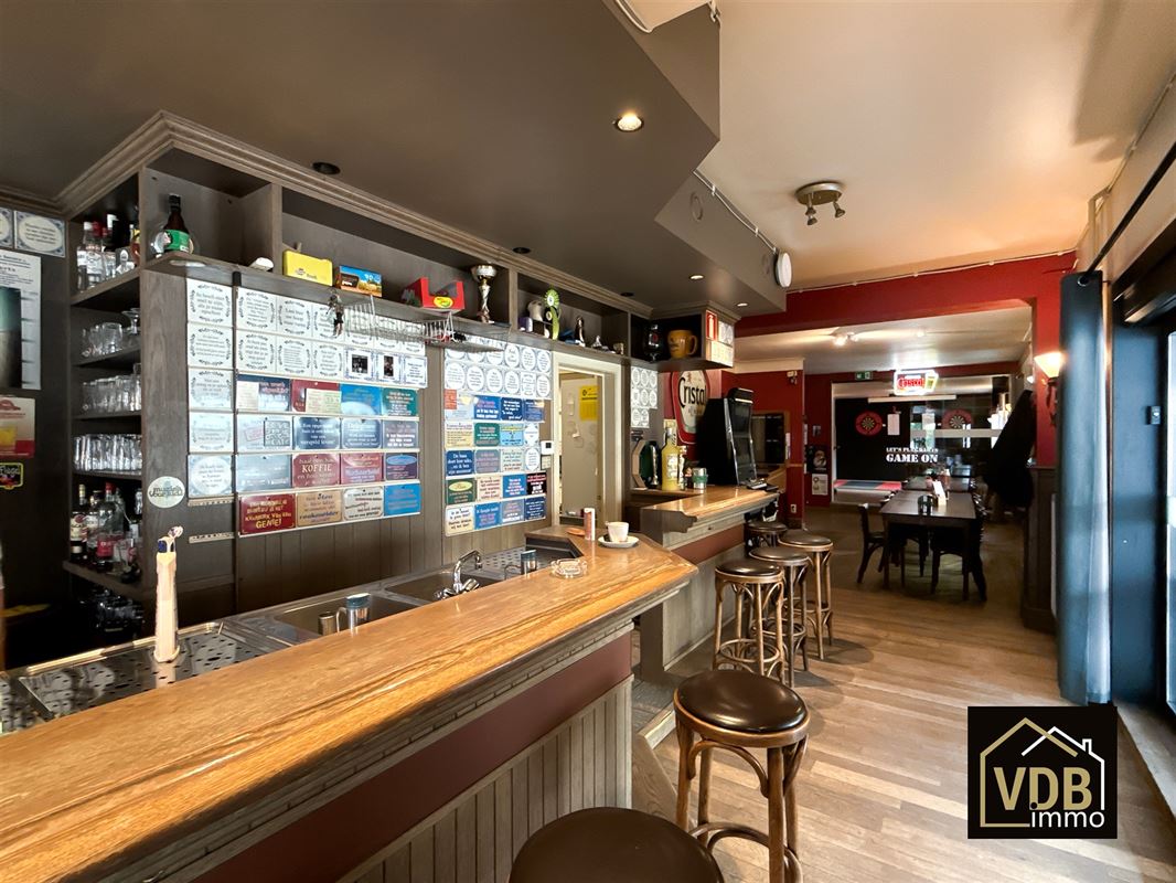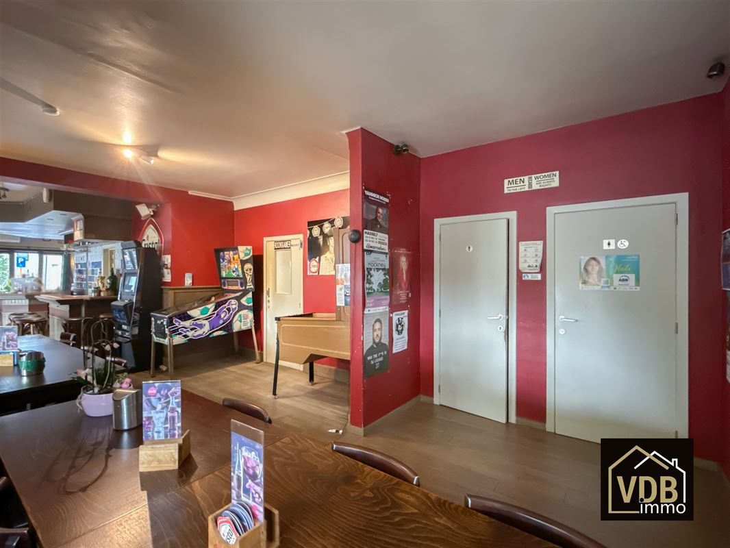 Het café met vele zitplaatsen en uitbouw – terras is goed in orde, gekend bij de bevolking en een fijne plaats om te vertoeven, te kaarten, te darten …., kortom te ontspannen. Deze gelijkvloerse verdieping bedraagt 221,71 m² inclusief terras – veranda.