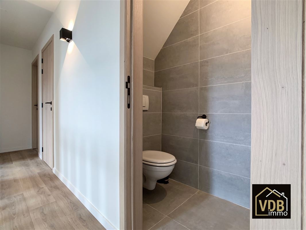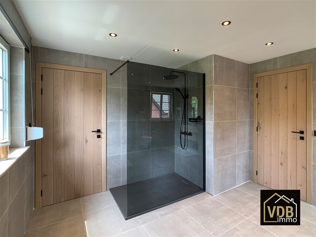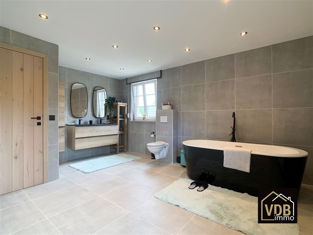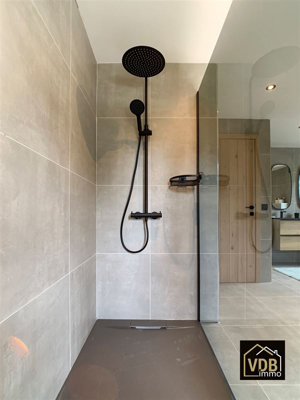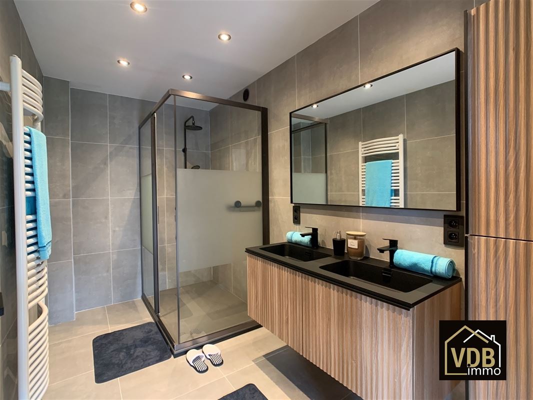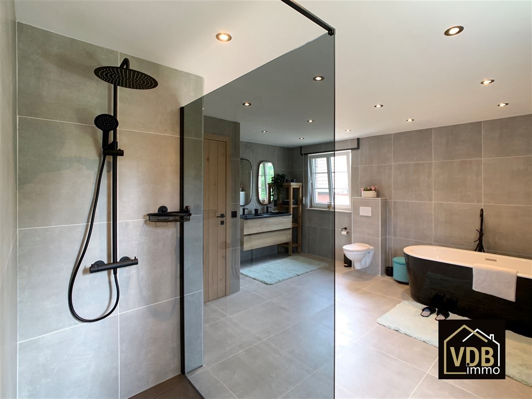 De eerste verdieping telt 3 grote slaapkamers, een dressing , een 2de afzonderlijk toilet, een berging, een dressing en de 2de badkamer met dubbele wasbak, inloopdouche, bad en toilet. De inrichting is warm en nodigt uit.