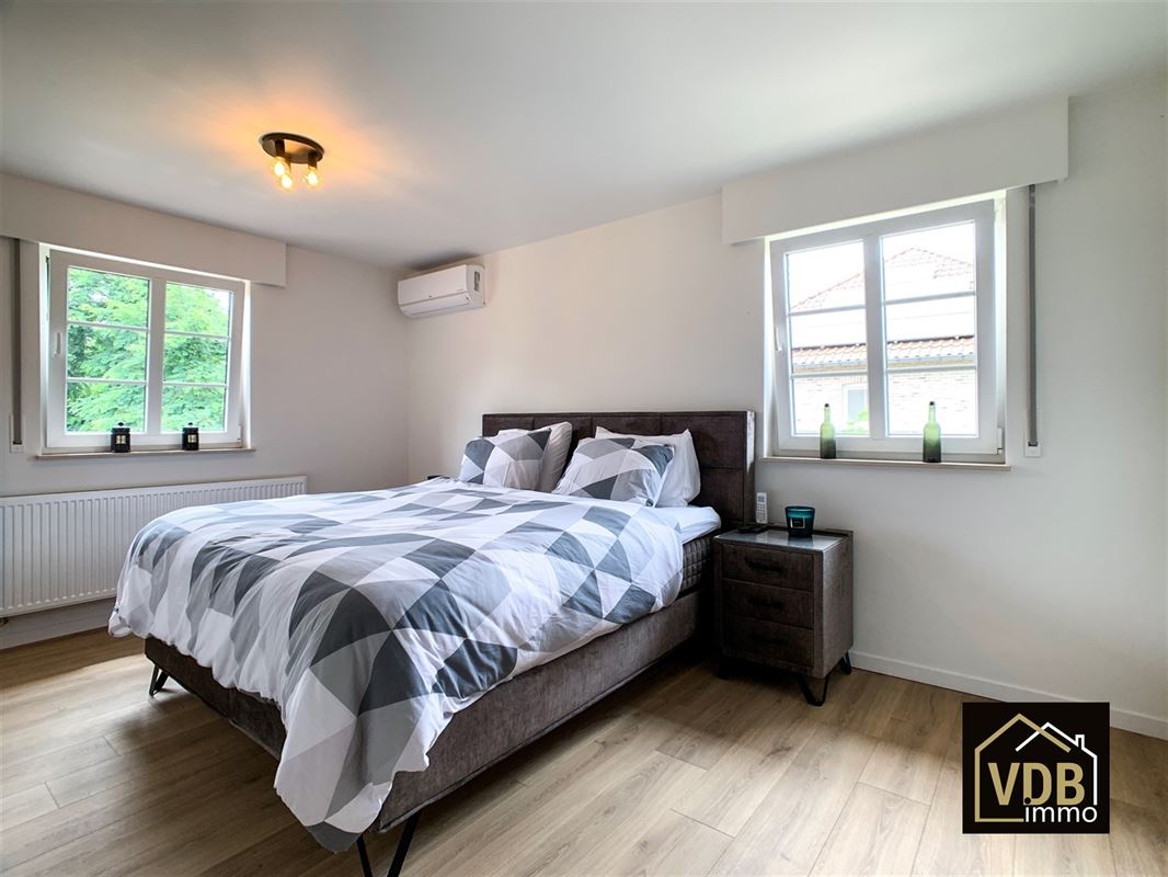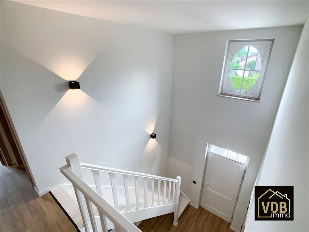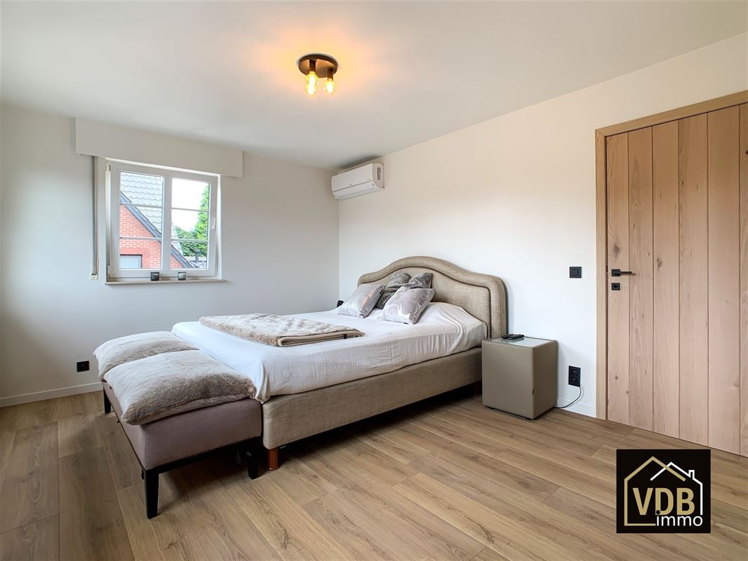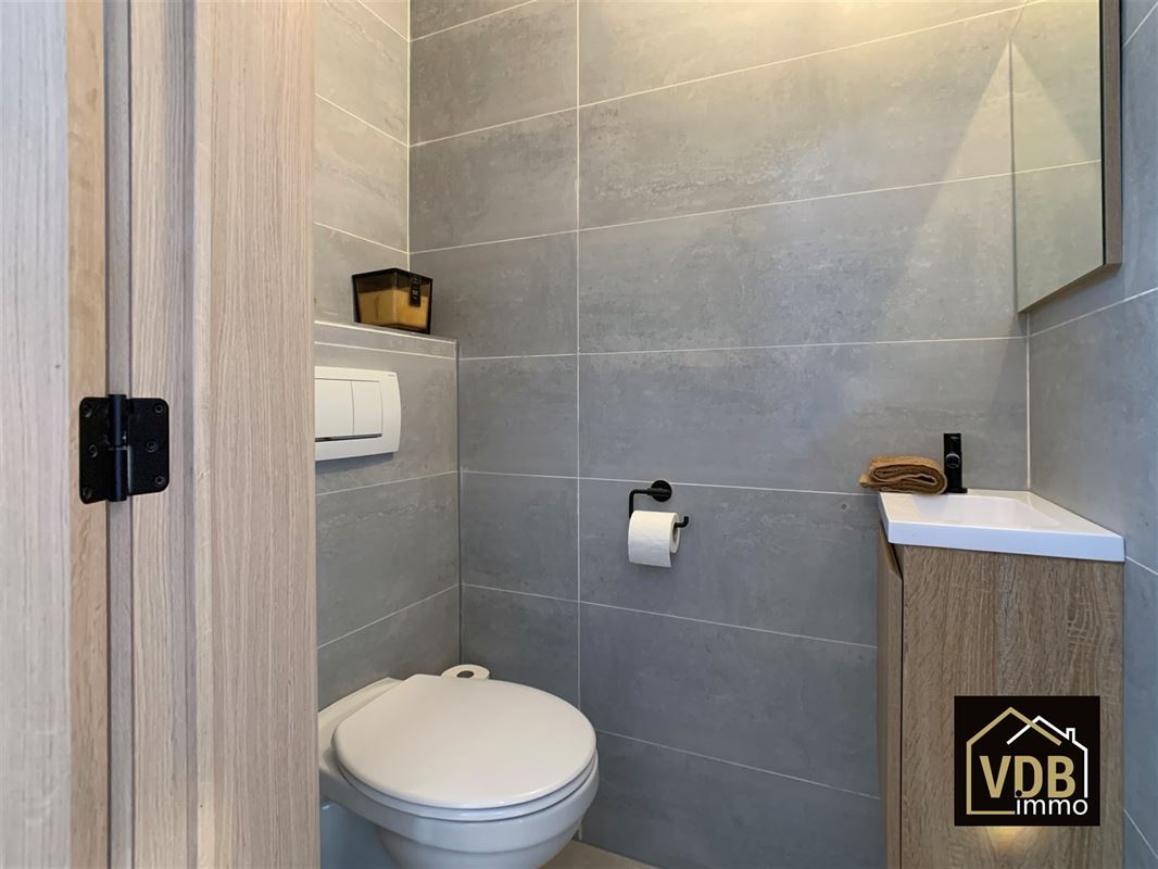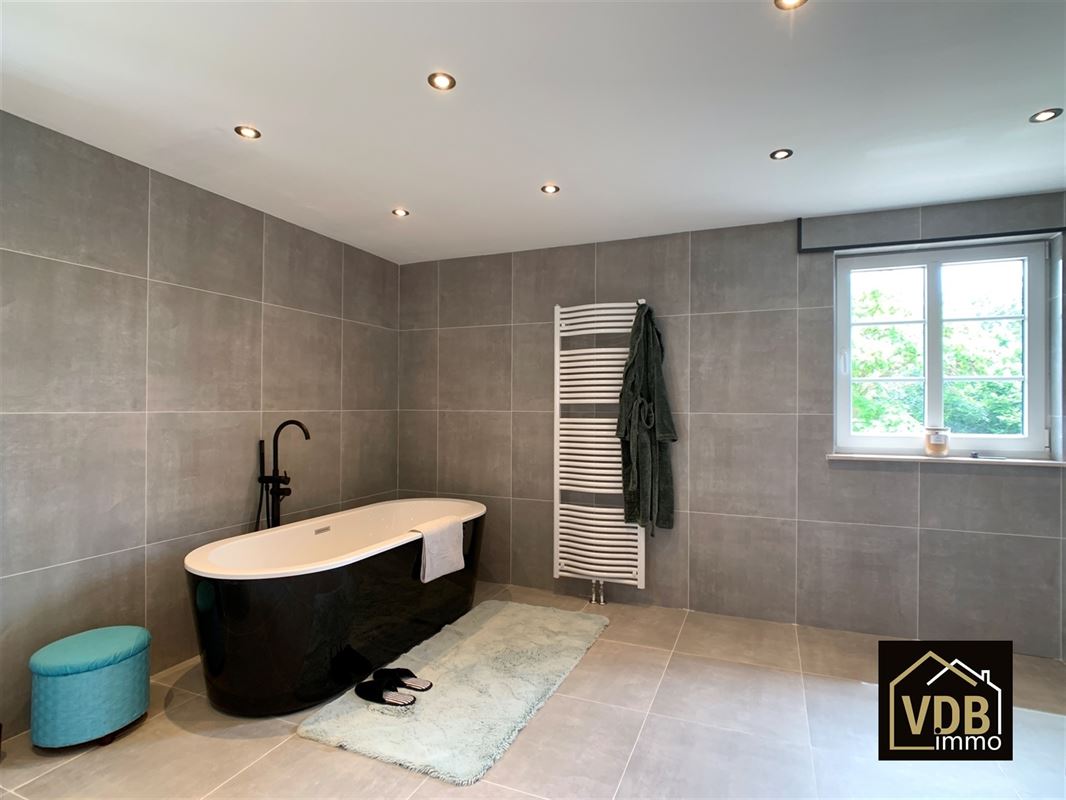 De eerste verdieping telt 3 grote slaapkamers, een dressing , een 2de afzonderlijk toilet, een berging, een dressing en de 2de badkamer met dubbele wasbak, inloopdouche, bad en toilet. De inrichting is warm en nodigt uit.